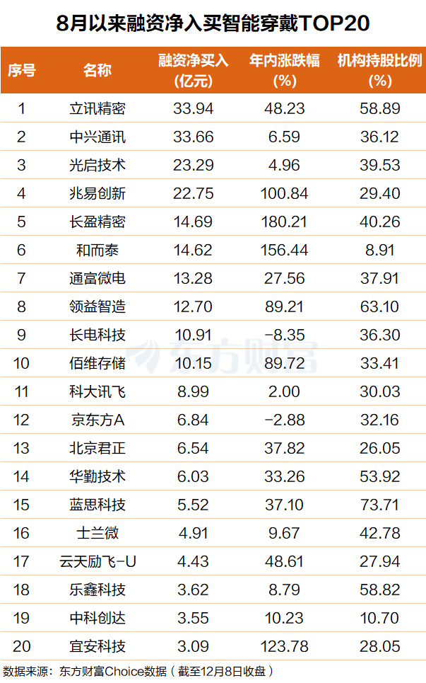 值得注意的是,融资净买入靠前的不少是机构重仓股,比如蓝思科技、领益智造、立讯精密、、华勤技术等个股机构持股比例均超过了50%。