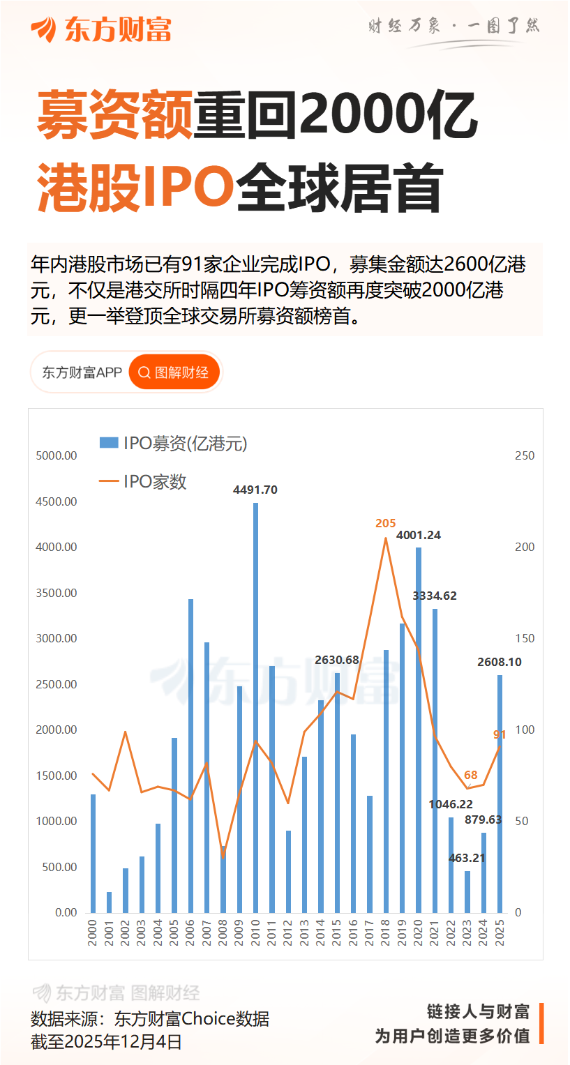 港股IPO募资总额近2600亿港元,居全球第一