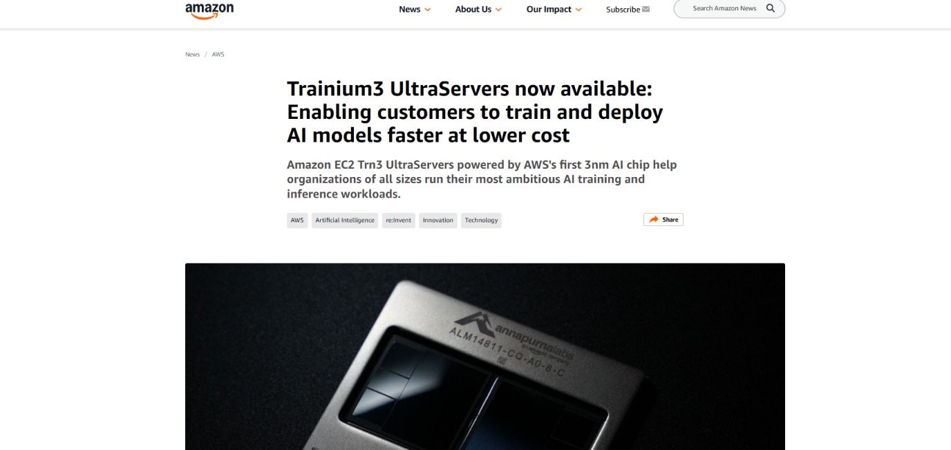 当然,指望亚马逊Trainium3与谷歌TPU一战,甚至“挑战”的投资者可能会有些失望,毕竟没有任何资料显示这款芯片除了“性价比”之外的其他优势。