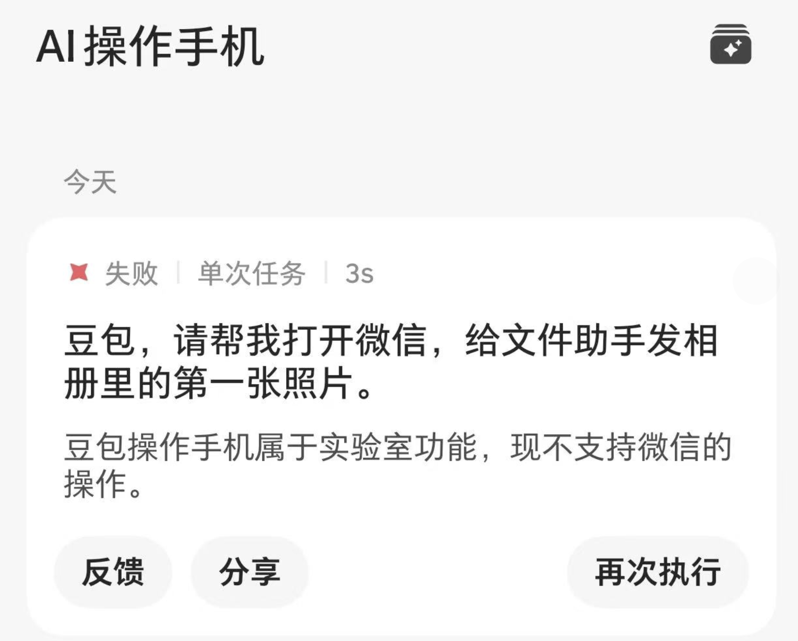 这也导致主流手机厂商的AI助手都曾推出针对微信的调用功能,但后续被终止了。
