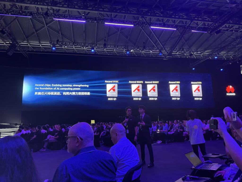 徐直军披露了芯片演进规划和目标。除了今年第一季度已经量产商用的昇腾910C,明年第一季度将要发布昇腾950PR,明年第四季度发布昇腾950DT。2027年第四季度要发布昇腾960、2028年发布昇腾970.