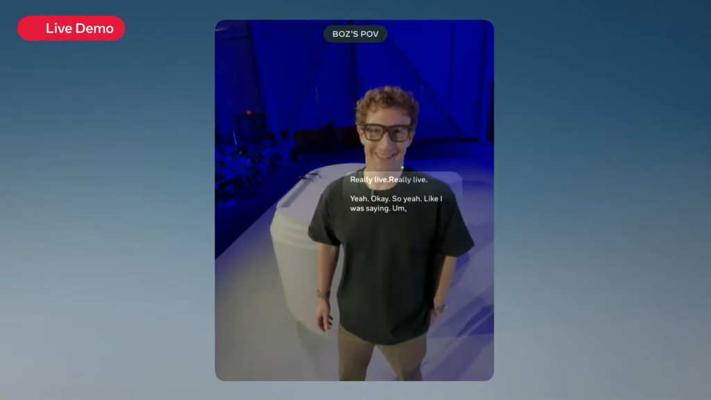 扎克伯格展示眼镜的右镜片视角以及手势控制。来源:Meta直播